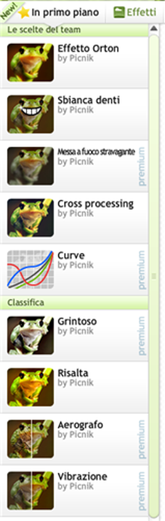 Facilissimo da usare e divertente, Picnik si presenta da solo: basta provarlo per capire le ragioni che l'hanno portato in poco tempo ad imporsi nel mercato degli editor fotografici online. Oltre alle funzionalità di base (come correzione automatica, esposizione e ritaglio), puoi applicare tanti effetti alle tue foto e aggiungere testo, cornici e "adesivi".
